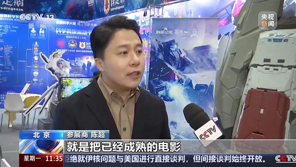 参展商 陈超:我们会考虑这样一条路径,就是把已经成熟的电影打造好的一些叙事内容和IP在游戏上作为一个演化,用户扮演在电影过程当中的具体的某一个角色,让用户可以参与到这部电影所构建的世界当中。