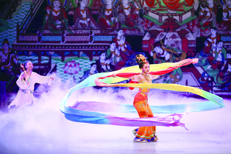 演员在甘肃黄河剧院表演舞剧《丝路花雨》。 新华社发