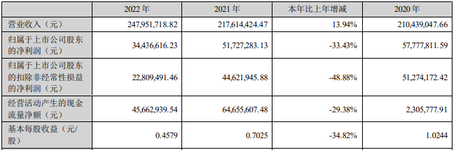2021年至2023年,中英科技营业收入分别为2.18亿元、2.48亿元、2.78亿元,归属于上市公司股东的净利润分别为5172.73万元、3443.66万元、1.46亿元,归属于上市公司股东的扣除非经常性损益的净利润分别为4462.19万元、2280.95万元、2772.72万元,经营活动产生的现金流量净额分别为6465.56万元、4566.29万元、3218.56万元。